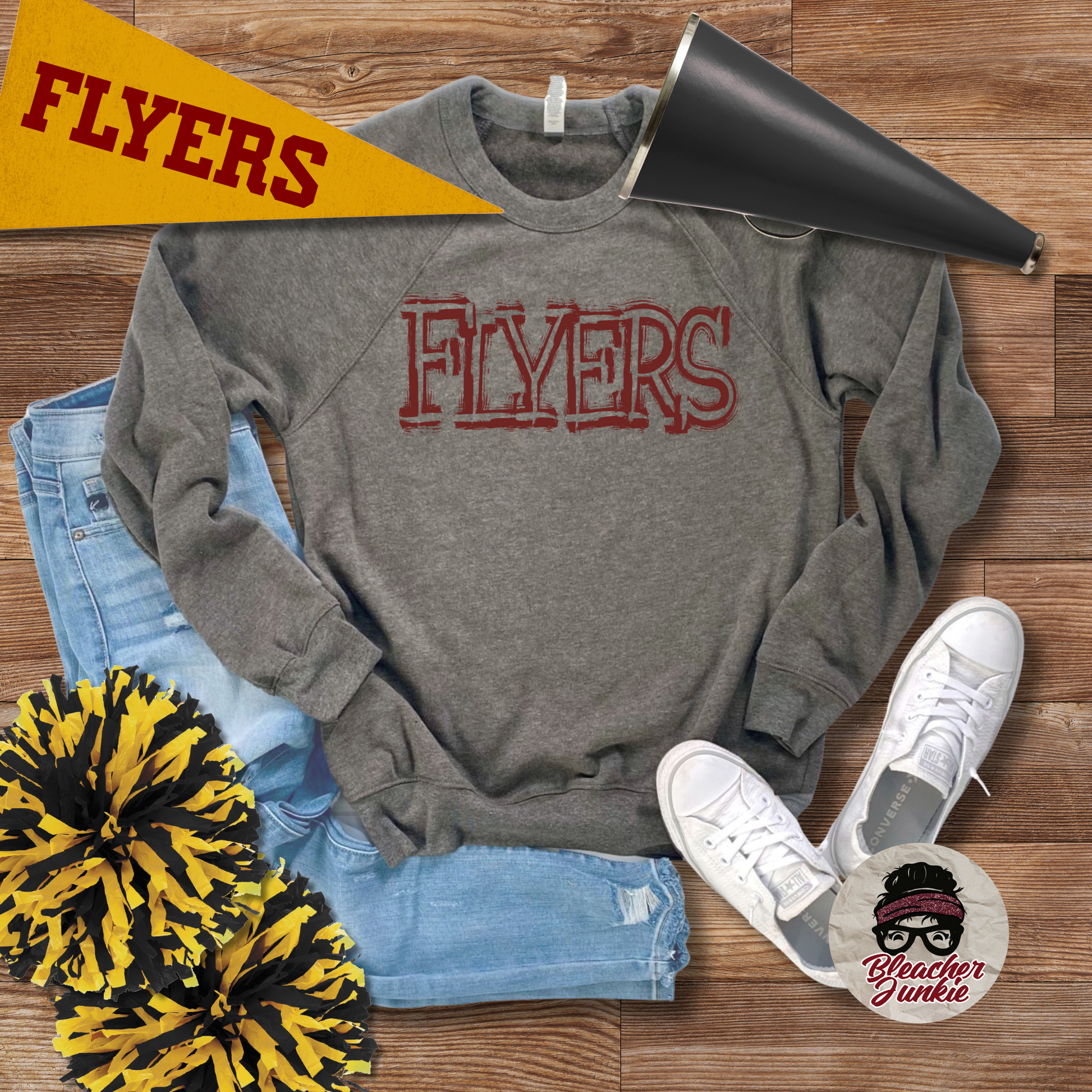 Scratched Flyers Mascot Shirt, Crewneck, or Hoodie | Bella Canvas 3001CVC Tee, 3901 Sweatshirt, 3719 Hoodie | School Spirit Wear for Game Day